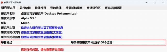 返回研究所,点击研究所大厅,即可获取精灵球、进化石等补给。(每天 0 点刷)