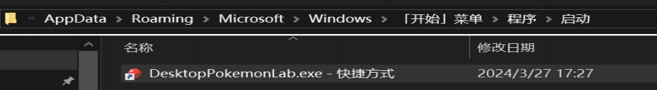 如果想要开机自动启动宝可梦桌面研究所,可以先右键 DesktopPokemonLab.exe 文件,选择创建快捷方式。然后按 Win+R 键,输入 shell:startup(注意冒号要用英文号), 把创建好的快捷方式放入弹出的文件夹里,就可以实现开机自启动啦!
